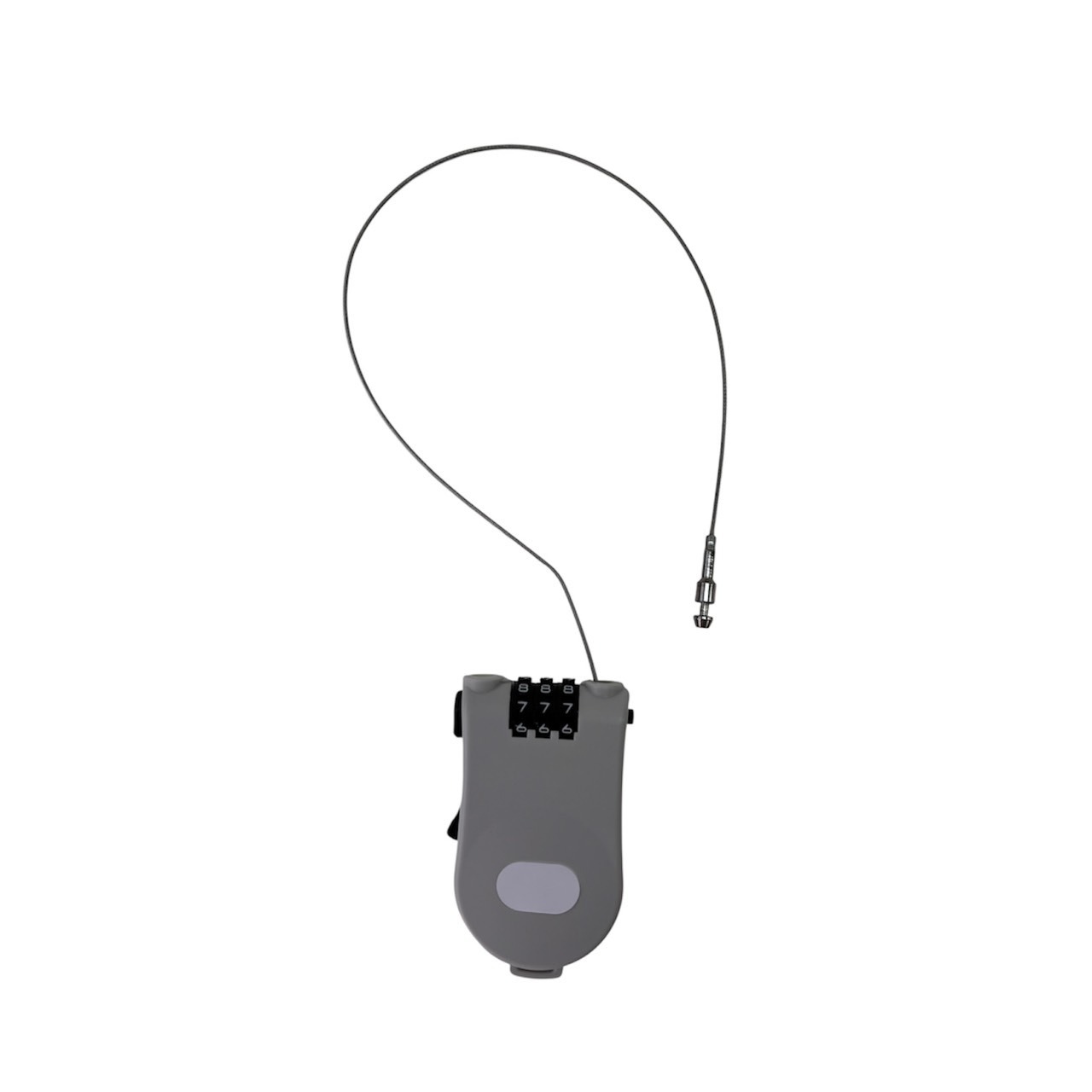 シンプルでスタイリッシュなグレーカラーのこのロックは、巻取り式ワイヤーを採用し、使わない時はスッキリ収納可能。